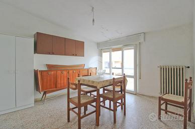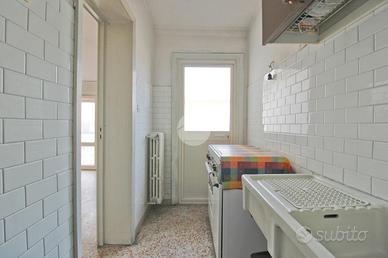 L'ingresso si apre su un ampio disimpegno, che conduce alla zona giorno composta da una sala da pranzo con cucinotto separato con accesso ad un balconcino di servizio.