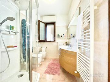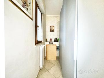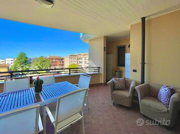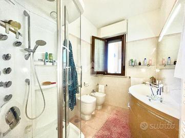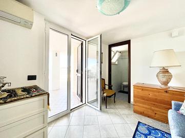 Al piano principale troviamo un accogliente ingresso che si apre sul soggiorno, un ambiente luminoso e ben proporzionato, affacciato su un grande terrazzo ideale per vivere momenti di relax all'aperto; alla sinistra del soggiorno si sviluppa una cucina abitabile, anch'essa con accesso al terrazzo. La zona notte comprende una camera matrimoniale, uno studio, un pratico ripostiglio e un elegante bagno dotato di doccia idromassaggio.