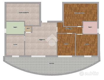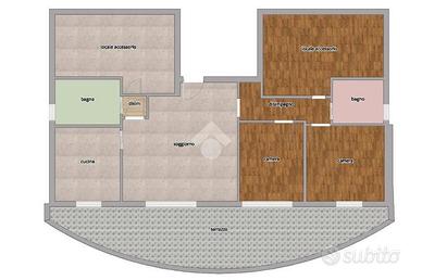 Completano la composizione interna le due camere da letto, un locale accessorio ed un secondo locale utilizzabile come lavanderia, perché dotato degli attacchi per la lavatrice.