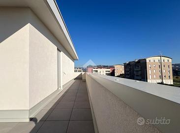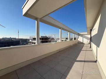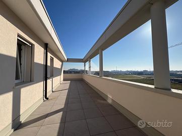 Il terrazzo di 80 mq che circonda l'intera unità non solo regala una vista panoramica sul parco quindi zona non edificabile che lascia una visuale libera da altri palazzi per godere di momenti di relax o per ospitare amici e familiari.