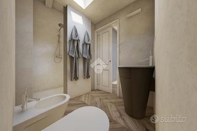 Al piano superiore troviamo la camera matrimoniale principale dotata di un bagno privato e di una cabina armadio, garantendo privacy e praticità, una seconda camera matrimoniale che si affaccia su un terrazzo, infine a completare un ulteriore bagno.