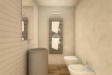 L'appartamento si sviluppa su due livelli, offrendo spazi ben distribuiti e rifiniture di qualità. Al primo livello, l'ampia zona giorno accoglie con un'atmosfera luminosa e moderna, arricchita da un bagno di servizio per la massima comodità. Da essa, si accede direttamente a un ampio terrazzo che conduce a un giardino privato, ideale per momenti di relax all'aperto.