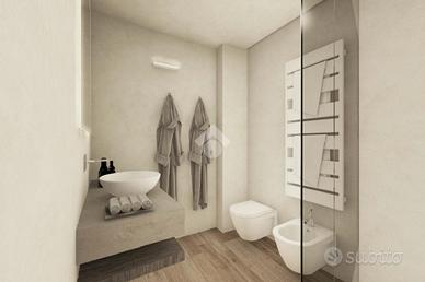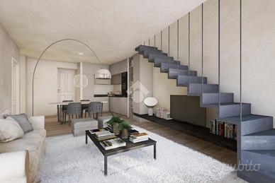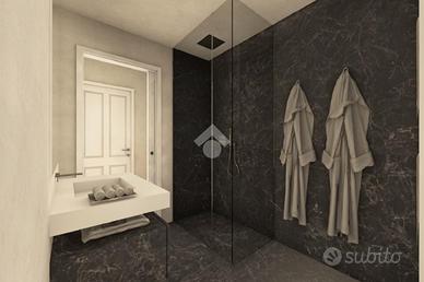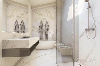 L'appartamento si sviluppa su due livelli, offrendo spazi ben distribuiti e rifiniture di qualità. Al primo livello, l'ampia zona giorno accoglie con un'atmosfera luminosa e moderna, proseguendo vi è la camera matrimoniale con bagno e un ulteriore camera con un secondo bagno.