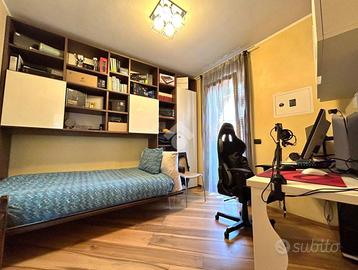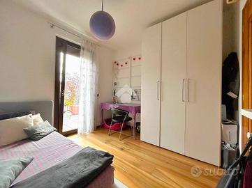 Attraverso il disimpegno si arriva alla zona notte, progettata per offrire comfort e funzionalità. Qui troviamo una camera singola di dimensioni adeguate, ben esposta e dotata di accesso diretto al terrazzo.