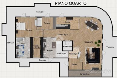 Situato all'ultimo piano di un edificio ben curato, l'appartamento è servito da un ascensore che conduce direttamente all'interno, garantendo una sensazione di assoluta riservatezza.