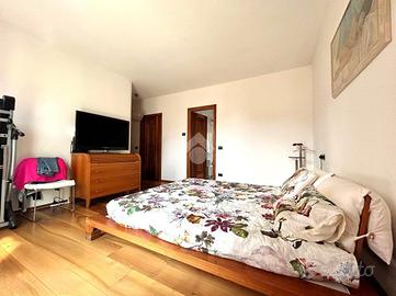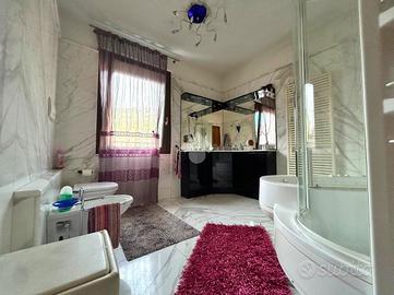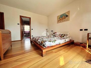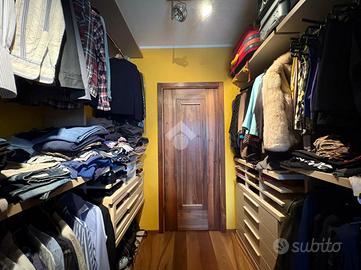 Proseguendo, si raggiunge la camera matrimoniale padronale, pensata per offrire un ambiente riservato e accogliente. La stanza è dotata di un bagno privato finestrato, completo di vasca, e di una cabina armadio dedicata, funzionale e ben organizzata.