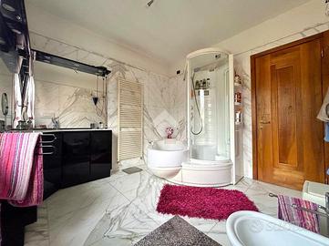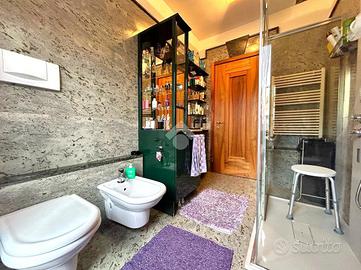 Accanto si trova il primo bagno, finestrato e completo di box doccia, anch'esso con uscita diretta verso l'esterno, caratteristica che valorizza ulteriormente la vivibilità degli spazi.
