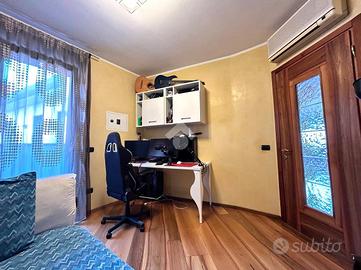 Dalla zona giorno si accede a una stanza attualmente adibita a studio. Grazie alla sua posizione e alle sue dimensioni, questo ambiente può trasformarsi facilmente in una camera per gli ospiti o in uno spazio dedicato ad attività personali. Sempre dal soggiorno si raggiunge il locale lavanderia, un elemento molto pratico nella gestione quotidiana della casa.