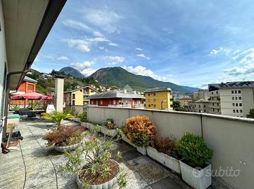 In una posizione tra le più comode e centrali di Sondrio e a pochi passi da Piazza Garibaldi, proponiamo in vendita un attico di grande prestigio, caratterizzato da spazi ampi, luminosi e da un terrazzo vivibile che circonda l'intera abitazione, offrendo continuità tra gli ambienti interni ed esterni.