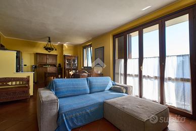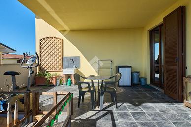 In una zona tranquilla, con ampia area verde e area cani davanti casa, a 30 mt dalla fermata dell'autobus per San Donato e a pochi minuti di auto dal centro del paese. La palazzina è stata costruita nel 2004 ed ha l'ascensore. L'appartamento si trova al secondo ed ultimo piano, è stato curato nei dettagli ed ha diverse caraterristiche che lo rendono unico nel suo genere, tra cui il terrazzo coperto di 38 Mq e l'ampiezza della zona giorno. L'ingresso è nella zona living, luminosa e grande abbastanza da creare una zona cottura, con cucina a vista e tavolo da pranzo, una zona relax con divano e tv ed una per lo smart working. Questo ambiente ha una finestre e una portafinestra che dà accesso al terrazzo. Dalla zona living un disimpegno accompagna alla camera da letto matrimoniale ed al bagno con la doccia. La metratura e la disposizione della zona giorno permetterebbero di creare anche uno studio o una cameretta per chi lo desiderasse. Il pavimento in cotto dà un tocco rustico ma elegante all'appartamento, dotato di serramenti con doppi vetri, zanzariere e predisposizione per l'impianto di aria condizionata. Completa la proptrietà la cantina.