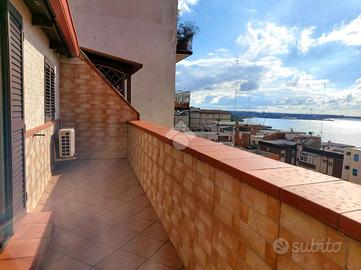 Viale Virgilio: Nella zona del Lungomare Vittorio Emanuele è disponibile un attico in ottimo stato ed in stabile dotato d'ascensore. Rappresenta una soluzione ideale per chi desidera vivere in un contesto urbano, senza rinunciare alla tranquillità e al fascino di una vista mozzafiato sul mare. L'appartamento è composto da ingresso-corridoio, cucina salone con balcone ed esposizione esterna, camera da letto con balcone ed esposizione interna, cameretta con finestra ed esposizione interna, studio con finestra ed esposizione interna, bagno con box-doccia e finestra con affaccio interno, infine un'ampio terrazzino interno verandato. Inoltre è presente porta ingresso blindata, pavimento uniforme, porte interne in legno, infissi in pvc, impianto idrico ed elettrico in buono stato. Possibilità d'acquisto di un box-auto a parte di €40.000.