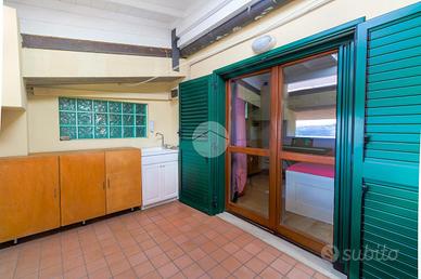 L'ingresso di questo appartamento ci conduce direttamente su un'ampia zona giorno open-space di 80 mq c.ca, ripartita in zona living, angolo cottura e salone; tutta la zona giorno ha l'uscita diretta su un comodo terrazzo perimetrale panoramico e luminoso, ottimo per godersi momenti di relax sia in famiglia che con gli amici. A completare la zona giorno abbiamo un bagno finestrato con antibagno.