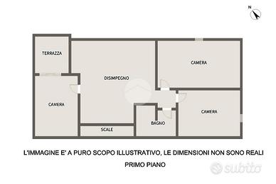 Una scala conduce al piano superiore, composto da tre camere da letto una con terrazzo e un bagno finestrato.