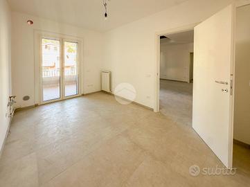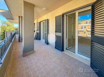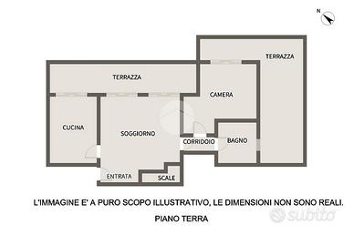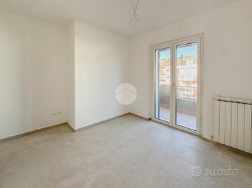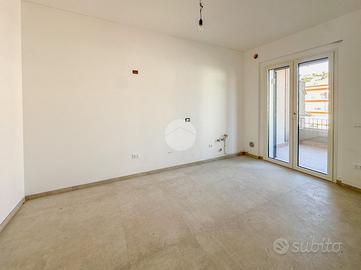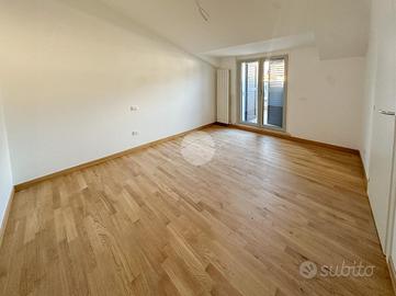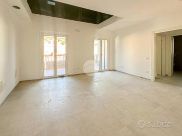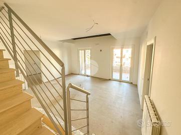 L'ingresso si apre su un ampio soggiorno con accesso diretto al grande terrazzo perimetrale, sul quale affaccia anche la cucina abitabile. Lo stesso piano ospita una camera da letto, sempre con affaccio esterno sul terrazzo, e un bagno finestrato.