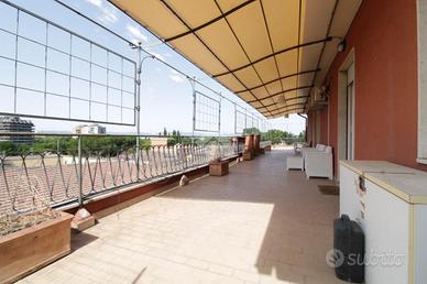 Attico con terrazzo panoramico nel cuore del centro storico. Proponiamo in esclusiva un' abitazione unica nel suo genere, posta al quinto ed ultimo piano. Una residenza affascinante, già pronta da abitare, che unisce funzionalità e carattere, arricchita da un raro terrazzo con vista aperta. L'ingresso conduce a un luminoso soggiorno doppio, valorizzato da una disposizione flessibile degli spazi. Sulla destra si trova l'angolo cottura, ben posizionato e discreto, mentre una porta scorrevole permette di isolare una porzione della zona giorno, ideale per ricavare una seconda camera, uno studio o una zona lettura, mantenendo comunque l'eleganza di un ambiente aperto e arioso. Un bagno finestrato, serve la zona giorno. La zona notte è composta da una camera matrimoniale con cabina armadio e da un secondo bagno, anch'esso finestrato, offrendo così privacy e comfort. Il terrazzo di circa 76 mq rappresenta il vero punto di forza: un affaccio raro e suggestivo sui tetti e sui campanili del centro storico, con scorci che spaziano fino all'Anfiteatro e alla passeggiata. Perfetto per vivere momenti di relax o convivialità all'aperto, in totale riservatezza. L'attico gode di una luminosità straordinaria grazie all'esposizione favorevole e alla presenza di numerose finestre, che garantiscono luce naturale per tutto il giorno. A completare la proprietà, una comoda cantina. Un'abitazione dal carattere unico, perfetta per chi desidera vivere il centro con stile, in un contesto riservato e dal fascino senza tempo.