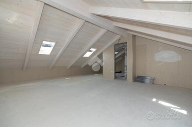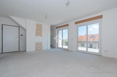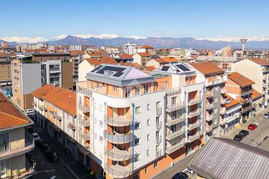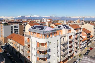 VIA VAL LAGARINA. Nel complesso signorile 'Residence Helios' recentemente ultimato, proponiamo attico situato al quinto piano, dotato di terrazzo con vista panoramica sulle colline torinesi. L'edificio è stato progettato con attenzione particolare all'efficienza energetica in classe A4. L'impianto fotovoltaico integrato contribuisce a ridurre i costi energetici. L'isolamento termico delle mura assicura un ambiente interno accogliente e silenzioso, limitando la trasmissione acustica. L'appartamento è composto di ingresso living su zona giorno con cucina a vista, camera da letto, disimpegno, bagno, un terrazzo e un balcone. Al piano superiore sottotetto non abitabile. Completa la proprietà la cantina di pertinenza. Possibilità di acquistare il box auto.