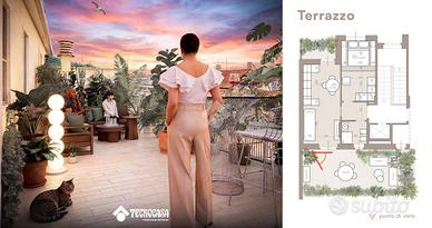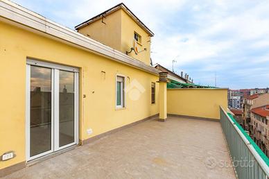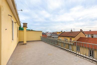 ATTICO CON TERRAZZO DI 30 MQ (possibilità di creare una pergola bioclimatica come nel render). In zona Parella, più precisamente in Via Viverone, a 5 minuti a piedi da Corso Monte Grappa e quindi anche dalla fermata della Metropolitana a circa un 1 km di distanza. Inotre, la fermata del 13, che porta fino al centro città è a soli due minuti a piedi così come tutti i principali servizi. Lo stabile edificato negli anni '60 si presenta in ottime condizioni ed è dotato di ascensore interno che lascia al piano. L'accesso all'appartamento è sul disimpegno che divide i vari ambienti. La zona giorno è ampia ed è bene divisa tra zona pranzo e zona soggiorno. Entrambi gli spazi affacciano su sfoghi esterni, la cucina sul balcone lato cortile con zona lavanderia e il soggiorno sul terrazzo di 30 mq esposto a sud. Questa caratteristica, rende l'appartamento molto luminoso. La camera da letto è di taglio regolare. Il bagno è finestrato e completo di tutti i sanitari. Completa la proprietà la cantina al piano interrato. Internamente è stato completamente ristrutturato e sono presenti le certificazioni degli impianti. Vi è la predisposizione per il climatizzatore. Nelle planimetrie potrete visionare due soluzioni di arredo già studiate con un architetto. Contattaci per maggiori informazioni e per visionarlo senza impegno.