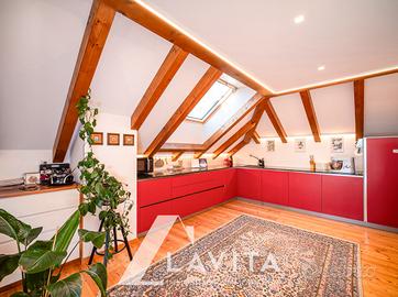 Completano la proposta una soffitta spaziosa ad uso deposito, due cantine di proprietà e un box auto coperto, disponibile al prezzo di 30.000€.