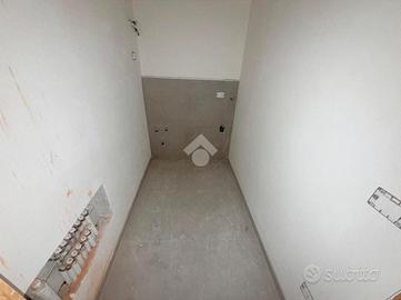 L'abitazione offre una luminosa zona giorno open-space con cucina a vista, due camere da letto, bagno finestrato con box doccia e un comodo ripostiglio.