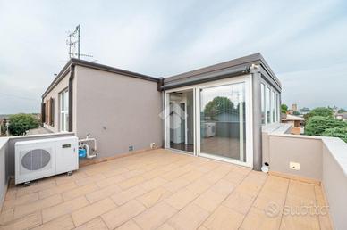Villafranca di Verona - inserito in ricercata e piacevole zona residenziale a fondo chiuso, collocato in complesso residenziale di sole quattro unità, proponiamo in vendita esclusivo attico edificato nel 2013 posto al secondo piano servito da esclusivo terrazzo abitabile.