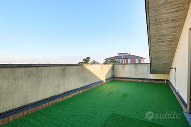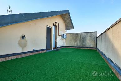 In centro paese, al quarto ed ultimo piano di una palazzina con ascensore costruita a metà degli anni '90. L'appartamento è stato appena ristrutturato ed è pari al nuovo, è stato anche montato un condizionatore per l'aria fredda e calda a seconda della stagione, nel bagno è presente un termoarredo e il boiler per l'acqua calda. L'ingresso è in un disimpegno che accompagna alla zona giorno e al bagno. Il bagno ha il lucernario e la doccia, e c'è lo spazio per mettere lavatrice e asciugatrice. La zona giorno è molto ampia pertanto sarebbe possibile mettere un paravento per creare una 'zona notte' a parte, trattandosi di un monolocale al momento l'ambiente è unico, lo spazio però permette piena libertà negli arredi. L'ambiente è illuminato da un lucernario e due portafinestra che danno accesso al terrazzo. Il terrazzo misura circa 30 mq ed è uno spazio vivibile e in cui si gode di privacy. l'appartamento è vuoto e subito disponibile, è possibile acquistare il box auto a parte.