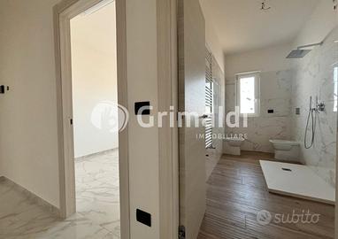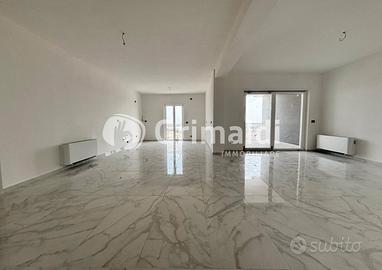 Questo in particolare misura 146 mq circa, ed è composto da un grande ambiente cucina-soggiorno in stile open space, tre camere da letto - di cui una con cabina armadio due bagni con doccia, un ampio terrazzo e una grande balconata.