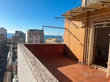 Via Cavallotti ad.ze Via Mazzini - a soli 350 metri dalla Facoltà di Medicina e Chirurgia in Piazza Ebalia e dal Lungomare - a due isolati dalla centralissima Via di Palma - Attico panoramico con VISTA MARE in stabile con ascensore - Ingresso in corridoio con ripostiglio - una camera con accesso al terrazzino esterno - due camere con finestra esterna - cucina a vista - bagno con finestra e box doccia - ripostiglio. Esposizione angolare esterna. ARREDATO