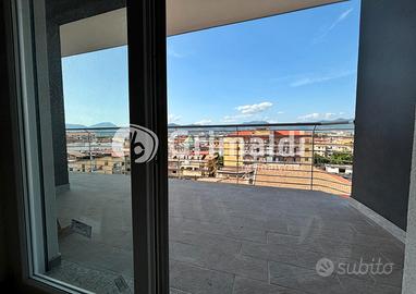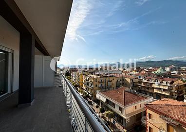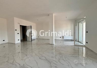 Questo in particolare misura 128 mq circa, ed è composto da un ampio ambiente cucina-soggiorno in stile open space, tre camere da letto, due bagni con doccia, un ampio terrazzo e una grande balconata.