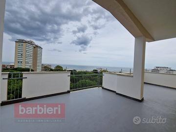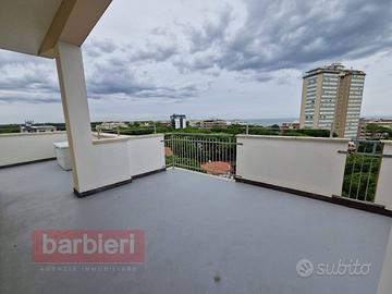 Affittiamo a Milano Marittima attico completamente ristrutturato in posizione centrale posto al 7° piano con ascensore e portiere, composto da soggiorno con angolo cottura, ampio terrazzo panoramico vista mare (che verrà interamente rifatto per la bella stagione), due camere matrimoniali, una camera con letto a castello e due bagni con box doccia. Completano l'offerta tv, aria condizionata, lavastoviglie, lavatrice ed un posto auto. Disponibile agosto 2026