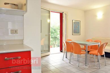 Sito al secondo piano, con accesso da vano scale oppure elevatore privato, composto al secondo piano da soggiorno con angolo cottura e spazioso balcone abitabile angolare, bagno con box doccia, camera da letto matrimoniale con balcone e cameretta con castello.