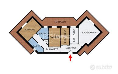- Cucina di 9,34 MQ con accesso diretto all'ampio terrazzo di 62,32 MQ