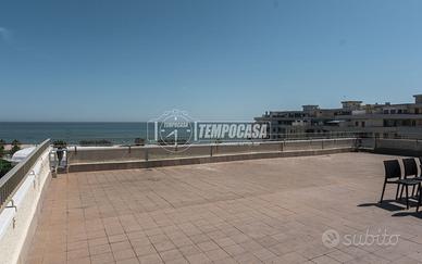 Luminosissimo attico di 90mq posto al 5° piano di una palazzina dotata di ascensore, con splendido terrazzo di 145mq VISTA MARE, a 200 METRI DALLA SPIAGGIA di Lido San Tommaso. Completa la soluzione un posto auto coperto.