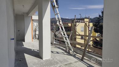 Nel cuore pulsante di Caserta, in via Gallicola, sta prendendo vita un'opportunità unica per chi cerca il connubio perfetto tra eleganza, comfort e modernità: un esclusivo attico di nuova costruzione al 4° piano con ascensore. Varcando la soglia di questo gioiello immobiliare, verrete accolti da un ampio salone con angolo cottura, spazio ideale per momenti conviviali e relax, illuminato dalla luce naturale che entra generosa grazie alla tripla esposizione sud-ovest-est, vi è poi una confortevole camera da letto ed una cameretta che si presta perfettamente a diventare la stanza dei vostri figli o uno studio accogliente. Il bagno, raffinato e funzionale, completa l'area living con classe. Ma ciò che rende veramente speciale questa abitazione sono le ampie balconate di circa 80 mq che avvolgono l'intero immobile, offrendo scorci luminosi e un'atmosfera ariosa senza eguali. Inoltre, sulla balconata lato camera, un pratico vano lavanderia con predisposizione per un secondo bagno aggiunge un tocco di funzionalità in più. Ma non è tutto, il vero protagonista è l'imperdibile terrazzo di copertura di circa 110 mq, uno spazio esclusivo, pensato per regalarvi momenti di puro piacere all'aria aperta. Qui potrete organizzare serate indimenticabili con amici e famiglia, grazie agli impianti idrici e gas già installati, per vivere appieno ogni stagione in totale libertà. La soluzione si completa con un comodo box auto di circa 25 mq, dotato di impianto di carico e scarico acqua, e un posto auto di proprietà, assicurandovi una vita quotidiana senza stress. L'attico sarà consegnato ultimato entro dicembre 2026: un capolavoro di design e tecnologia con finiture di pregio, parquet negli ambienti principali, riscaldamento radiante a pavimento e un sistema a pompa di calore per garantire caldo e fresco tutto l'anno. La predisposizione per pannelli solari fotovoltaici e termici vi offre il massimo dell'efficienza energetica, mentre l'isolamento acustico, l'impianto antifurto e la vi
