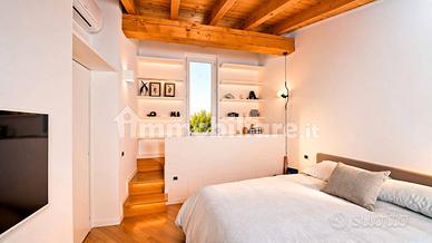 Vendo A pochi passi dal lungolago di Salò, in una posizione che consente di vivere il centro con assoluta comodità ma al tempo stesso con riservatezza, questo attico all'ultimo piano rappresenta una soluzione pensata per chi cerca un'esperienza abitativa senza compromessi sul Lago di Garda. Inserito in un contesto curato e servito da ascensore, l'immobile si sviluppa su circa 123 mq e offre ambienti equilibrati, pronti da vivere, dove ogni dettaglio è orientato al comfort e alla funzionalità. La zona giorno e la cucina si aprono verso una prima terrazza vivibile, ideale per momenti conviviali e per vivere appieno la stagione sul lago. Al livello superiore, la zona notte si distingue per la presenza di una seconda terrazza con vista lago, accessibile direttamente dalla camera matrimoniale: uno spazio più riservato, perfetto per momenti di relax e privacy. La distribuzione degli spazi è razionale e immediata: un soggiorno luminoso accoglie la zona giorno, affiancato da una cucina separata, completamente attrezzata e da un pratico bagno di servizio. La zona notte comprende due camere con suggestive travi a vista e un bagno completo di vasca e doccia. Completa la proprietà un posto auto privato nella corte interna, elemento essenziale nel centro storico, oltre alla possibilità di acquistare un garage separatamente. L'immobile si presenta in eccellenti condizioni ed è immediatamente abitabile, dotato di aria condizionata in tutti gli ambienti, riscaldamento autonomo e gestione da remoto: una soluzione pensata per essere utilizzata fin da subito, senza necessità di interventi. Una residenza che unisce posizione, praticità e qualità, ideale sia come dimora privata sia come investimento in una delle località più solide e richieste del Lago di Garda.