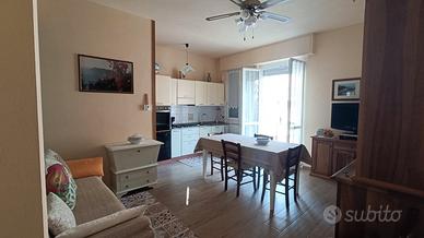 Trilocale di generosa metratura situato al primo ed ultimo piano di una Palazzina di pregio in zona residenziale e tranquillissima alle spalle del Budello, a 2 minuti a piedi dal Mare e dal Borgo storico. Internamente è ristrutturato con finiture di buon livello, si compone di grande Soggiorno con Cucina a vista affacciato su una Balconata, ampio corridoio a zona notte con comoda armadiatura su misura, due grandi Camere matrimoniali (una con altra Balconata), Bagno finestrato e comodo ripostiglio. Doppia aria, luminosissimo. Termoautonomo. Basse spese