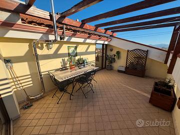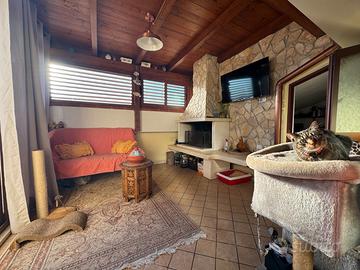 Nella terrazza adiacente la zona giorno, si trova dependance con tetto in legno e camino/barbecue, ampio RIPOSTIGLIO e lavanderia