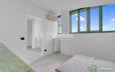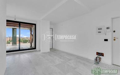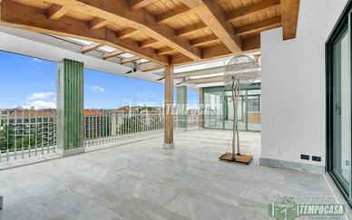 In stabile signorile con servizio di portineria e doppio ascensore, proponiamo in vendita un esclusivo attico con ampio terrazzo al piano. La proprietà si trova in una zona residenziale caratterizzata da ampi spazi verdi e ottimamente servita da negozi e mezzi pubblici. L'appartamento offre una soluzione abitativa unica e versatile: attualmente disposto come bilocale con soggiorno e cucina a vista, camera matrimoniale, bagno, veranda con vasca idromassaggio e locale sauna; con la possibilità di trasformazione in trilocale, ricavando una seconda camera da letto nella parte verandata. Fiore all'occhiello l'ampio terrazzo panoramico, ideale per momenti di relax e convivialità, con una vista aperta che regala grande luminosità agli ambienti. Da vedere!