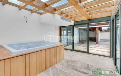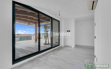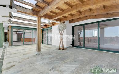 In stabile signorile con servizio di portineria e doppio ascensore, proponiamo in vendita un esclusivo attico con ampio terrazzo al piano. La proprietà si trova in una zona residenziale caratterizzata da ampi spazi verdi e ottimamente servita da negozi e mezzi pubblici. L'appartamento offre una soluzione abitativa unica e versatile: attualmente disposto come bilocale con soggiorno e cucina a vista, camera matrimoniale, bagno, veranda con vasca idromassaggio e locale sauna; con la possibilità di trasformazione in trilocale, ricavando una seconda camera da letto nella parte verandata. Fiore all'occhiello l'ampio terrazzo panoramico, ideale per momenti di relax e convivialità, con una vista aperta che regala grande luminosità agli ambienti. Da vedere!