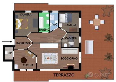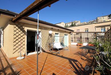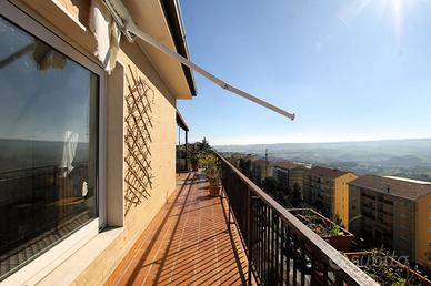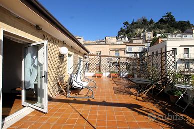 In posizione centrale, proponiamo attico di 105mq al terzo piano con ascensore, con terrazzo panoramico di 80mq così composto: ingresso, cucina con uscita su terrazzo, ripostiglio, ampio e luminoso soggiorno con uscita su terrazzo, camera matrimoniale, bagno finestrato, camera matrimoniale con uscita su terrazzo, altro bagno finestrato e camera singola.