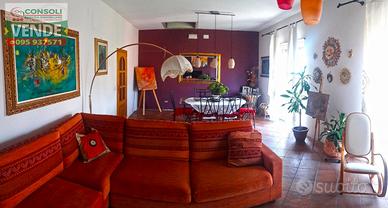 Consoli Immobiliare propone in vendita a San Giovanni Montebello Fraz. di Giarre (CT), un Attico posto al terzo piano di una palazzina di poche unità abitative, con vista mozzafiato a 360° dove possiamo ammirare sia il mare che la nostra maestosa Etna. L'immobile è ubicato in una zona molto tranquilla e comunque vicino a tutti i servizi primari. Ed è composto cosi: Ingresso su disimpegno che divide la casa in due ale. Entrando sulla sinistra troviamo una sala hobby che può comodamente essere adibita a cameretta, bagno, per poi uscire nel grande terrazzo di circa 80 mq, percorrendo il corridoio a seguire abbiamo due camere da letto, cucina con verandina e balcone a girare, ampio salone e a fine corridoio entriamo in un altro terrazzino chiuso dove è stato ricavato un altro ampio vano. L'immobile è dotato di : Impianto Di Riscaldamento Autonomo a pavimento con caldaia a condensazione dotato di n.2 collettori dove si possono collegare le testine elettroniche per comandare singolarmente il riscaldamento di ogni stanza; Impianto elettrico dotato di quadro di comando che permette di disattivare singolarmente sia la linea luce che la linea prese di ogni singola stanza; Impianto di antifurto con 2 sirene autoalimentate una per ogni lato del palazzo più sirene interne e sensori di movimento doppia tecnologia per ogni singola stanza; Impianto antenna autonomo con tecnologia sia digitale terrestre che digitale satellitare una presa ogni singola stanza; Impianto telefonico dotato di centralino telefonico intercomunicante da ogni singola stanza naturalmente ogni stanza ha una presa; Impianto di rete pc cablato in ogni singola stanza con swicth e router wi-fi al centro della casa per un segnale uniforme in ogni spazio; Porte e finestre in alluminio colore bianco perla a taglio termico e vetri doppi a bassa emissione.