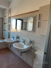 Costituito da: tre camere, soggiorno ,cucina open space, tre balconi, aria condizionata, tapparelle elettriche.Orientamento delle finestre in quattro direzioni. Incluso il garage piano terra con cantina.Ristrutturato nel 2025