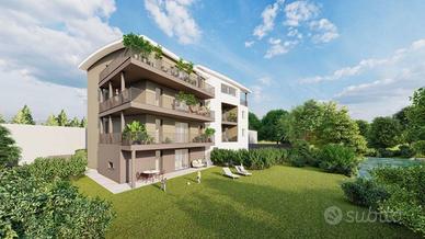 Rif: 00850 (193360771) - TREVISO zona ovest, palazzina di nuova costruzione di sole 7 unità abitative fronte fiume, attico al terzo ed ultimo piano con terrazza con pompeiana esposta a sud, servito da ascensore, composto da soggiorno cottura di 58mq, disimpegno, tre camere, cabina armadio, terrazza, due bagni, garage e posto auto. Riscaldamento a pavimento, pannelli fotovoltaici, aria condizionata, pavimentazione in legno, possibilità di scelta delle finiture di pregio. Consegna prevista per fine 2023. Cl. A2 ipe 50. Euro 450.000. Rif. 00850. STUDIO IMMOBILMARCA - Classe: A2 - IPE: 175.00 kWh/mq anno