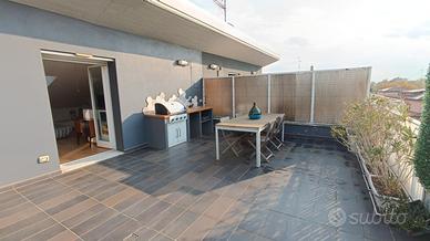 CARPI SAN MARINO -ATTICO DUPLEX CON TERRAZZO- PRIVATO vende a San Marino di Carpi, privato vende attico duplex quadrilocale di 100 mq al secondo ed ultimo piano in palazzina del 2009 servita da ascensore. Ingresso su sala con cucina open space e affaccio sul balcone abitabile, disimpegno notte, bagno con doccia, camera matrimoniale e camera a 3\4. Al piano superiore mansardato troviamo un'ampio spazio trasformabile in ulteriore camera da letto ( già predisposta con prese elettriche), bagno con vasca idromassaggio e grande terrazzo di 35 mq. Riscaldamento a pavimento, aria condizionata con tre split e pompa di calore, porta blindata, addolcitore, infissi doppio vetro in legno bianco, tapparelle elettriche e parquet vero posato ovunque tranne nei bagni. Completa l'immobile il garage al piano interrato da cui si accede attraverso cancello elettrico condominiale. Prezzo comprensivo di cucina con elettrodomestici e parte dell'arredamento. Senza spese d'agenzia, vendita tra privati. NO AGENZIE !