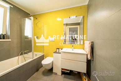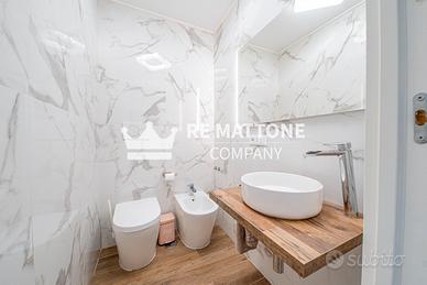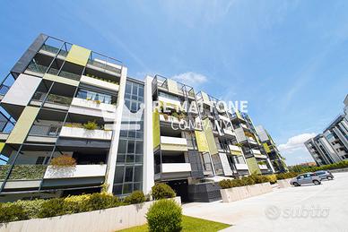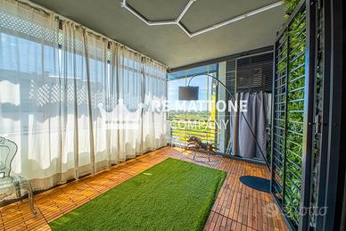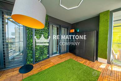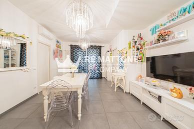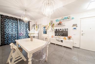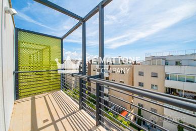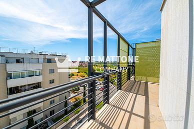 L'immobile è un attico e superattico molto luminoso al quarto e quinto piano di una palazzina di cinque piani di nuova costruzione, ha una metratura di circa 100mq disposta su due livelli. Al primo livello abbiamo un salone con ampio terrazzo di circa 20 mq chiuso con vetrate panoramiche amovibili, una cucina abitabile, un bagno ed una camera da letto e un ripostiglio, al piano superiore, il superattico, si trova una camere da letto, una piccola stanza, un bagno e un ampio terrazzo. Tutti gli infissi dell'appartamento sono in pvc con doppio vetro e filtri dell'aria. L'appartamento inoltre è dotato di pannelli solari condominiali, domotica centralizzata e climatizzatori. Completano la proprietà un box auto di circa 20 mq e un'ampia cantina di circa 10 mq.