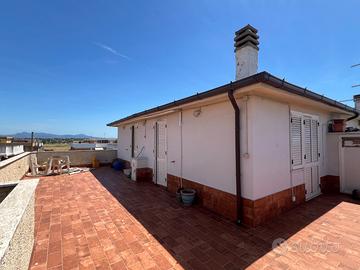 A soli pochi passi dalla sabbia, attico al 3° piano con tripla esposizione e 60 mq di terrazzo vista panoramica: un'oasi privata per godersi il sole, la brezza marina e serate al camino.