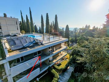 Il condominio è costituito da 9 unità e vanta di una piscina panoramica con idromassaggio e piscinetta bambini sul tetto che gode di una piacevole vista sul parco villa Alba e sul lago. L'appartamento é raggiungibile tramite un comodo ascensore.