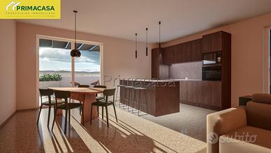 Proponiamo in vendita un ampio ATTICO situato all'interno di un residence di nuova costruzione, posto in una zona residenziale tranquilla e ben collegata, a pochi passi dal centro e dai principali servizi, offrendo così un'ottima combinazione di comfort, praticità e qualità della vita. L'immobile si trova al secondo piano, servito da ascensore, e fa parte di un piccolo complesso condominiale di sole quattro unità abitative, caratterizzato da bassi oneri condominiali che garantiscono una gestione economica e sostenibile. Internamente, l'appartamento presenta una luminosa zona giorno ben distribuita di ben 76mq, affacciata su una terrazza abitabile di 56 mq ideale per momenti di relax e convivialità all'aperto. Il reparto notte comprende tre camere da letto, due bagni finestrati e un pratico disimpegno. A completare la proprietà, sono inclusi un garage privato e un posto auto esclusivo, offrendo soluzioni di parcheggio comode e sicure. Dal punto di vista energetico, l'immobile si distingue per l'elevato livello di efficienza, classificato in classe energetica A4. è dotato di riscaldamento a pavimento, pannelli fotovoltaici e predisposizione per sistemi di ventilazione meccanica controllata, aria condizionata e allarme, assicurando massimo comfort abitativo, ridotti consumi energetici e un impatto ambientale minimo. Questa soluzione rappresenta un'ottima opportunità per chi desidera vivere in un contesto moderno, funzionale e sostenibile a pochi passi dal centro! La soluzione sarà terminata per la fine del 2026. RIF 40
