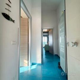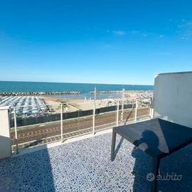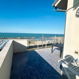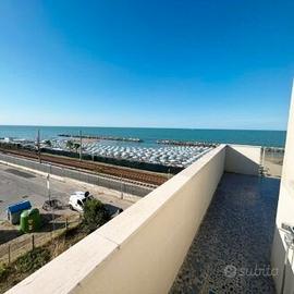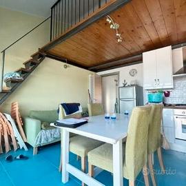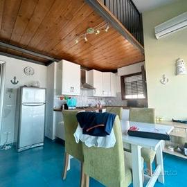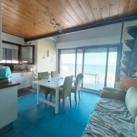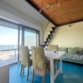 Appartamento posto al secondo e ultimo piano di palazzina di recente costruzione con poche unità abitative in prima fila mare, composto da; ampio soggiorno luminoso con angolo cottura che tramite portafinestra accede ad un terrazzo mozzafiato di 30mq con splendida vista mare, attraverso una scala a vista si accede al soppalco con due posti letto, camera matrimoniale e bagno finestrato con doccia. Inoltre l'immobile dispone di posto auto coperto.