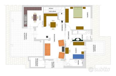 Le due camere da letto, i due bagni e parte del salone sono leggermente mansardati, ma autorizzati come locali abitativi.