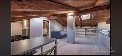 Si affitta Attico su 2 livelli con terrazzo panoramico. Al piano inferiore ingresso leaving su sala/cucina, camera da letto matrimoniale, bagno. Al piano superiore ampio open space con letto matrimoniale, 2 letti singoli e bagno. Completa la proprietà ampio garage compreso di armadio ski box. In zona tranquilla ma a 5 minuti dal centro paese. L'importo dell'affitto può variare a seconda della durata della locazione.
